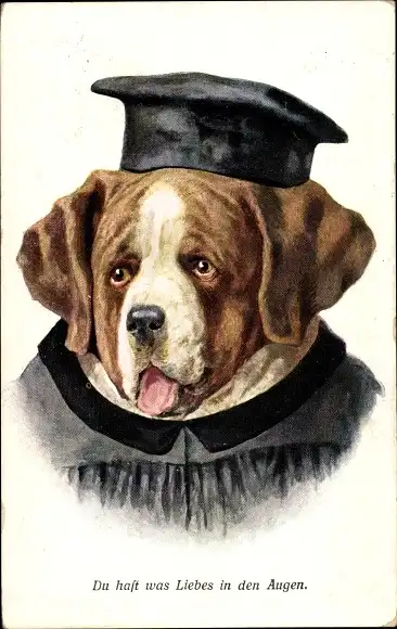 Ak Vermenschlichter Hund, Bernhardiner als Richter, Du hast was Liebes in den Augen