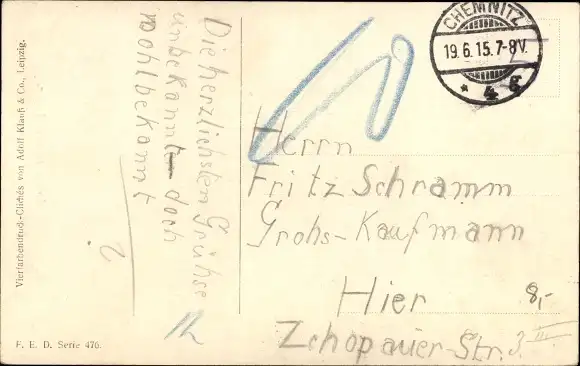 Zustand, siehe Scan, gelaufen, 1915 - ca 9 cm X 14 cm