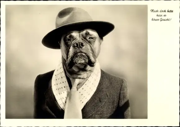 Ak Vermenschlichter Hund, Boxer im Anzug