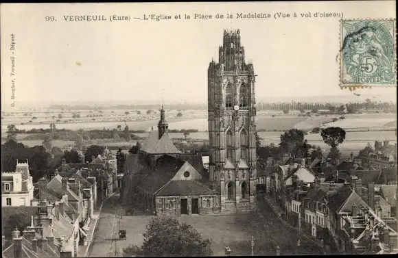 Ak Verneuil Eure, L'Eglise et la Place de la Madeleine
