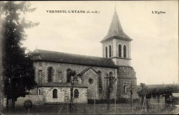 Ak Verneuil-l’Étang Seine et Marne, Eglise, vue générale