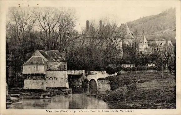 Ak Vernon Eure, Vieux Pont, Tourelles de Vernonnet