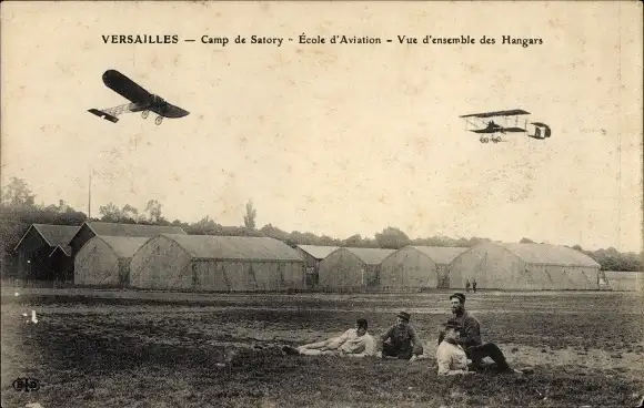 Ak Versailles Yvelines, Camp de Satory, Ecole d'Aviation, vue d'ensemble des Hangars