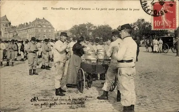 Ak Versailles Yvelines, Exerzierplatz, Soldaten pausieren, Essensversorgung