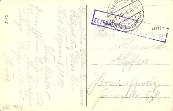 Zustand, siehe Scan, gelaufen, 1915 - ca 5 cm X 3 cm