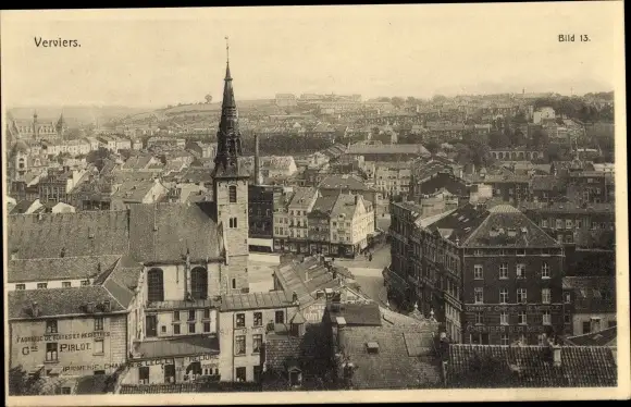 Ak Verviers Wallonien Lüttich, Panorama, Kirche