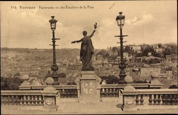 Ak Verviers Wallonien Lüttich, Panorama vu des Escaliers de la Paix