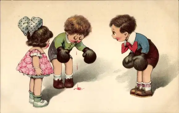 Ak Verwundeter Boxer, Kinder beim Boxkampf