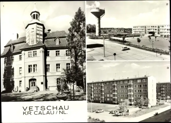 Ak Vetschau im Spreewald, Schloss, Wasserturm, Hermann Matern Oberschule, Heinrich-Heine-Straße