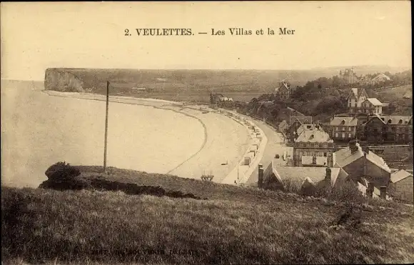 Ak Veulettes sur Mer Seine Maritime, Villen, Meer, Strand, Steilküste