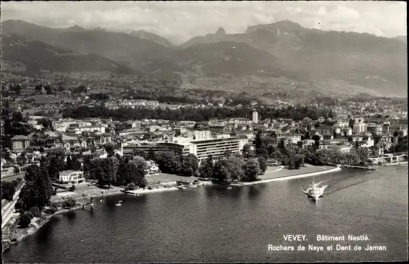 Ak Vevey Kanton Waadt, Batiment Nestle, Rochers de Naye et Dent de Jaman