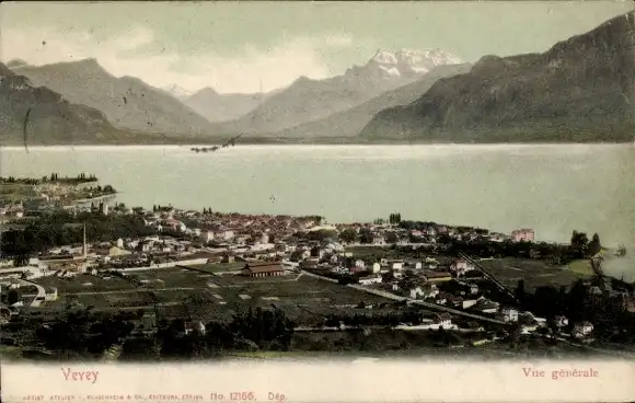 Ak Vevey Kt. Waadt, Gesamtansicht des Ortes