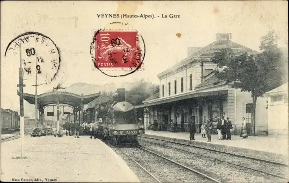 Ak Veynes Hautes Alpes, Bahnhof, Gleisseite, Dampflok