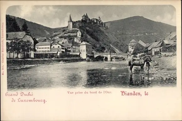 Ak Vianden Luxemburg, Vue prise du bord de l'Our