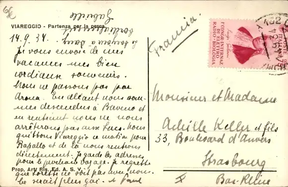 Zustand, siehe Scan, gelaufen, 1934 - ca 14 cm X 9 cm