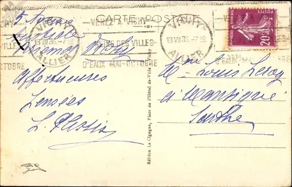 Zustand, siehe Scan, gelaufen, 1936 - ca 14 cm X 9 cm
