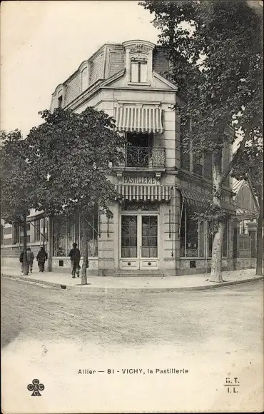 Ak Vichy Allier, vue générale de la Pastillerie, des passants