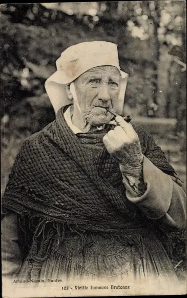 Ak Vieille fumeuse Bretonne, Bretonische Tracht