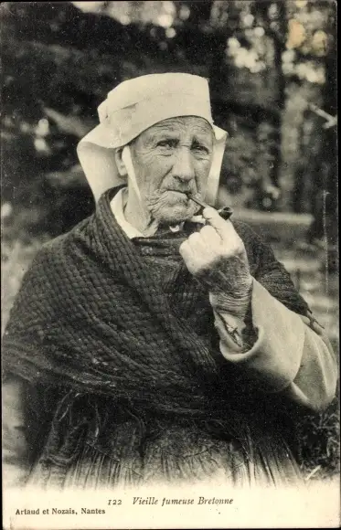 Ak Vieille fumeuse Bretonne, Bretonische Tracht