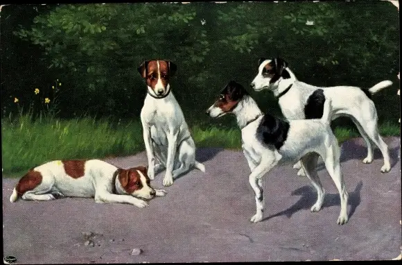 Ak Vier Hunde, Spaziergang, Straße