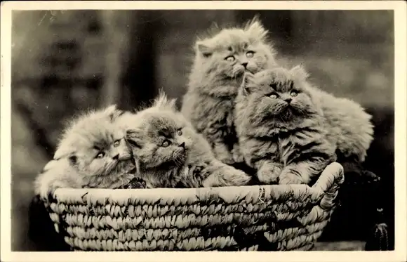 Ak Vier Katzen im Korb, Kätzchen