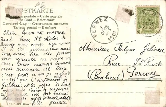Zustand, siehe Scan, gelaufen, 1907- TSN 672 - ca 14 cm X 9 cm