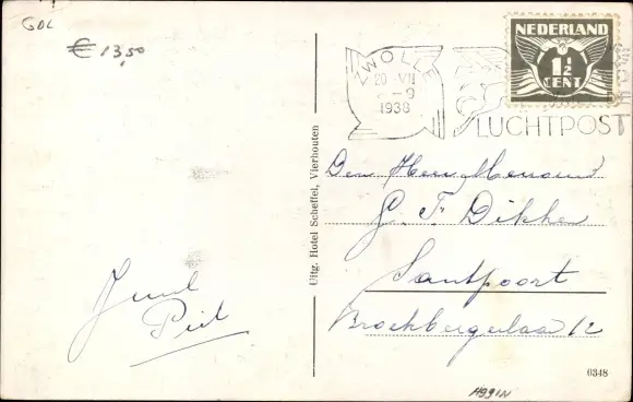 Zustand, siehe Scan, gelaufen, 1938 - ca 14 cm X 9 cm