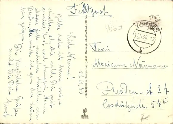 Zustand, siehe Scan, gelaufen, 1939 - ca 15 cm X 11 cm