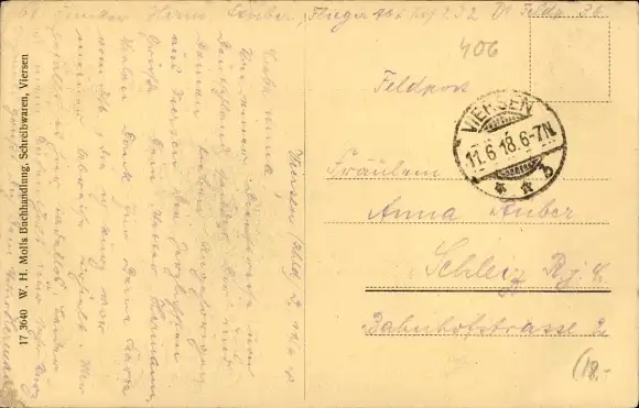 Zustand, siehe Scan, gelaufen, 1918 - ca 14 cm X 9 cm