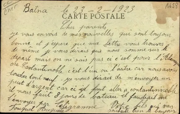 ungelaufen, Rückseite beschrieben, fleckig, sonst guter Zustand