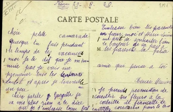 ungelaufen, datiert 1920, Rückseite beschrieben, Knick mittig