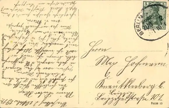Zustand, siehe Scan, gelaufen, 1914 - ca 5 cm X 3 cm