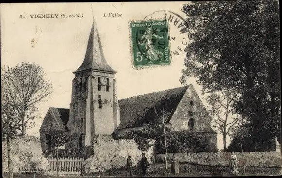 Ak Vignely Seine et Marne, L'Église, vue générale