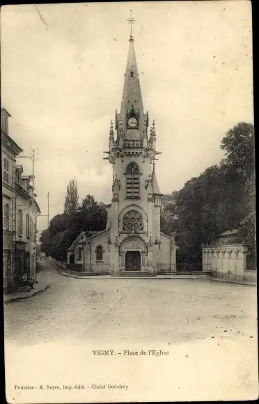 Ak Vigny Val d’Oise, Place de L'Eglise