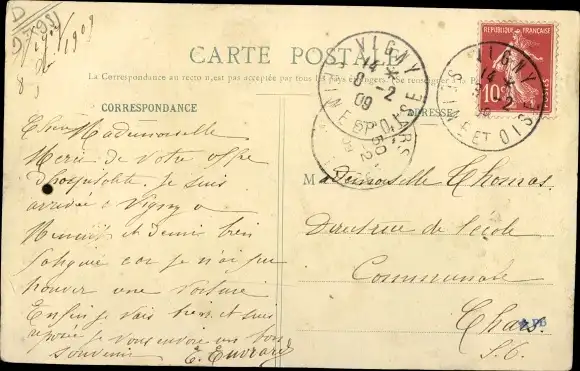 gelaufen 1909, leicht fleckig oben, sonst guter Zustand