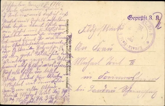 Zustand, siehe Scan, gelaufen, 1916 - ca 14 cm X 9 cm