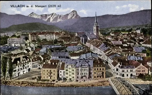 Ak Villach in Kärnten, Blick auf den Ort mit dem Mangart