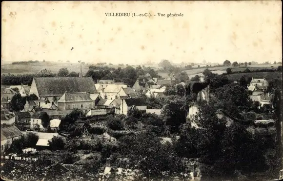 Ak Villedieu le Chateau Loir et Cher, vue générale du village, église