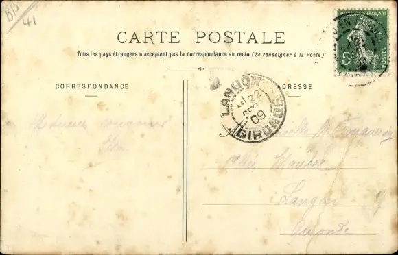 gelaufen 1909, Eckknick links unten, fleckig, sonst guter Zustand