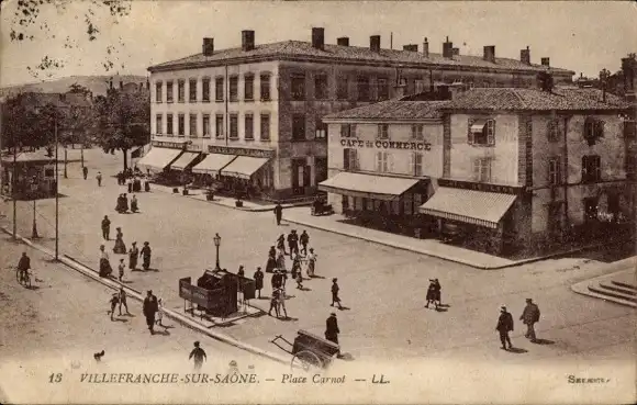 Ak Villefranche sur Saône Rhône, Place Carnot, Café de Commerce