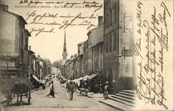 Ak Villefranche sur Saône Rhône, Rue Nationale, Porte d'Anse