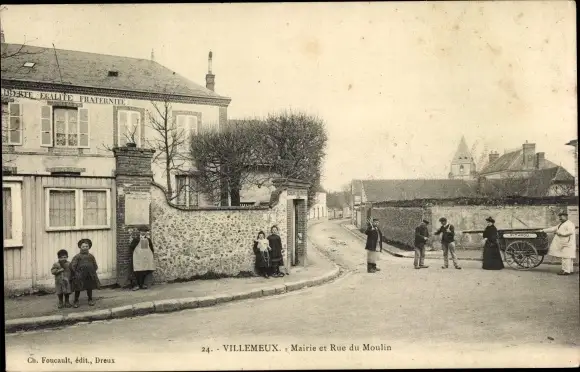 Ak Villemeux Eure et Loir, Mairie et Rue du Moulin