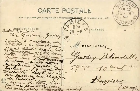 Zustand, siehe Scan, gelaufen, 1908 - ca 14 cm X 9 cm