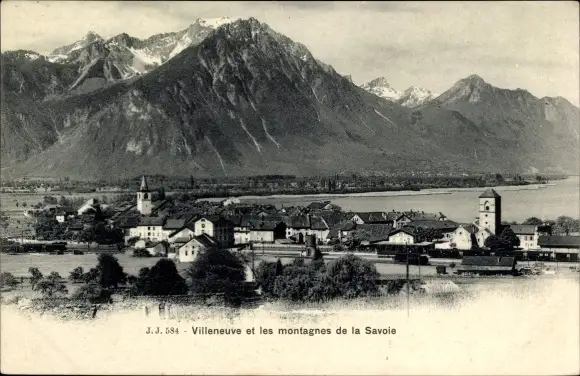 Ak Villeneuve Kanton Waadt, Die Berge von Savoyen und die Stadt