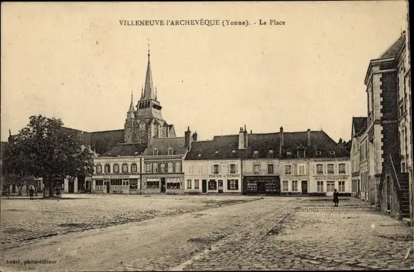 Ak Villeneuve L'Archevêque Yonne, La Place