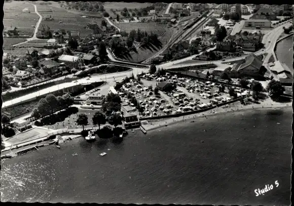 Ak Villeneuve Montreux Kanton Waadt, Camping T.C.S., Luftaufnahme