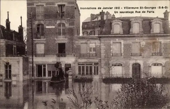 Ak Villeneuve Saint Georges Val de Marne, Überschwemmung Januar 1910, Rettung, Häuser