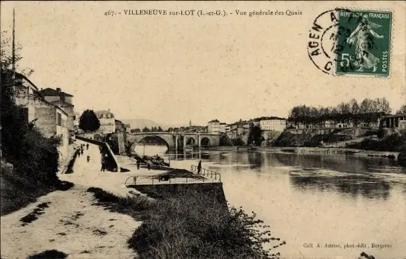 Ak Villeneuve sur Lot Lot et Garonne, vue generale des Quais
