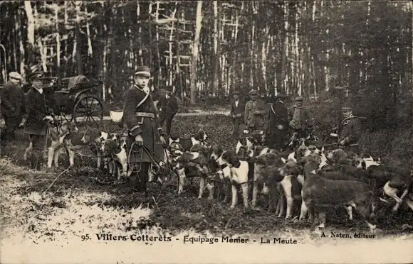 Ak Villers Cotterêts Aisne, Jagdszene, Jagdhunde