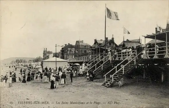 Ak Villers sur Mer Calvados, Bains Municipaux, Plage